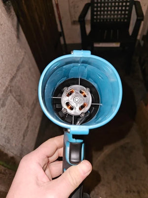 High-power cordless turbo jet fan with brushless motor and rechargeable battery. Compact, lightweight, and ideal for car detailing, home cleaning, electronics, and hard-to-reach spaces.